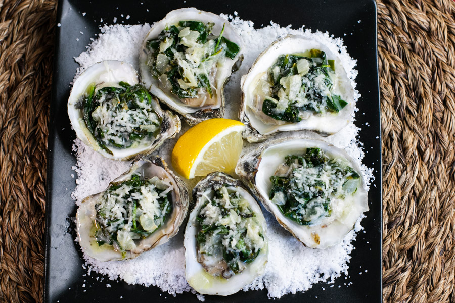 This version of Oysters Rockefeller is a little lighter than others which heightens the fresh flavors of the sea with just a little creaminess from the spinach and cheese.