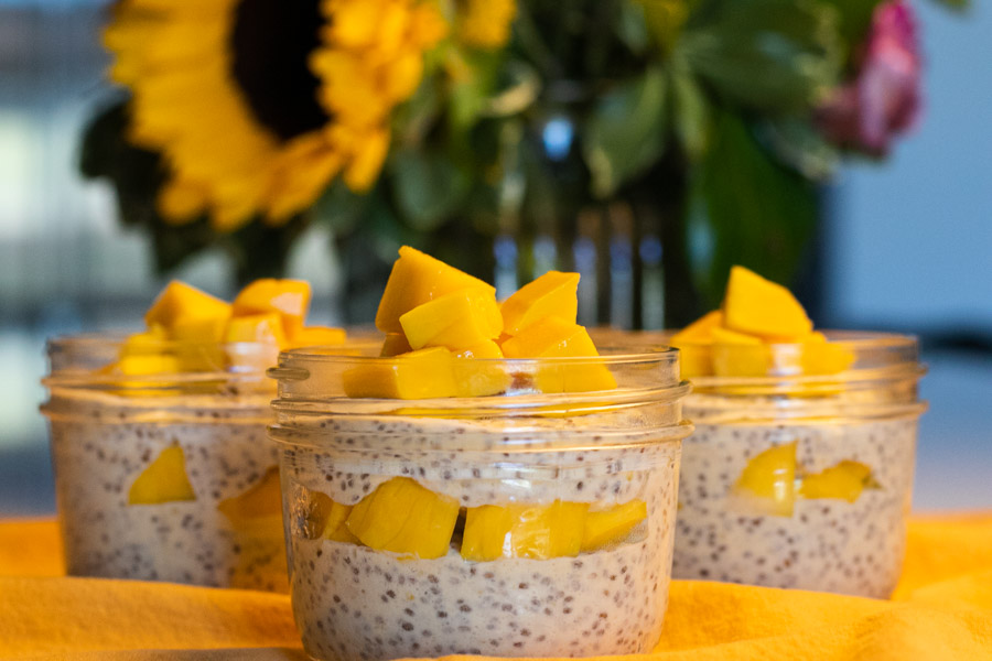 Blend the coconut milk and 1 cup of mango in a blender. Pour the mixture into a bowl and stir in the chia seeds. Once combined, pour half of the mixture into 4 small bowls or jars. Layer a few mangos on each. Next, top with the rest of the coconut mixture and another layer of mangos on the top. Cover each pudding with plastic wrap and let it sit in the refrigerator for at least 2 hours and up to 5 days.