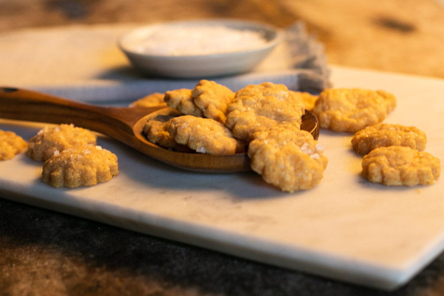 Maldon sea salt flakes for sprinkling over the crackers, optional