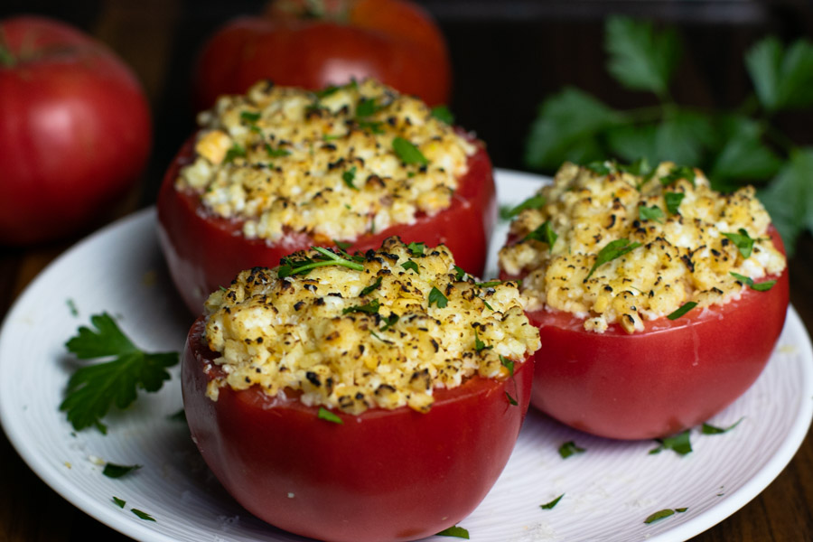 Remove the tomatoes from the pan and place them on a serving platter or individual plates. Sprinkle with parsley and serve warm