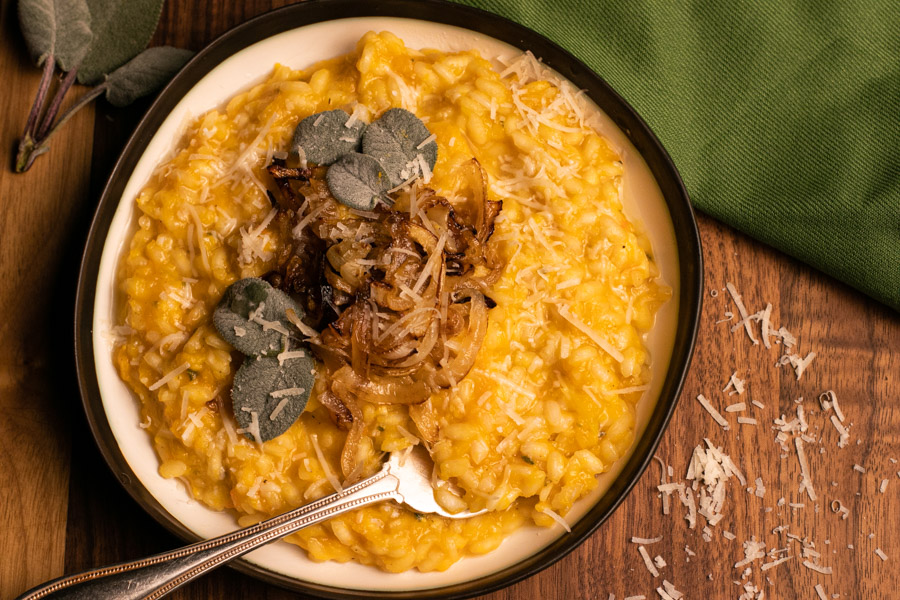 When winter squash is in season, it is the best time to make Butternut Squash and Caramelized Onion Risotto. It is savory, has a hint of sweetness, and will warm you up from head to toe.