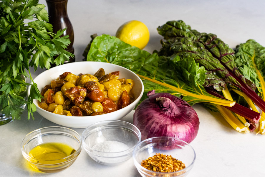 First, I gather all my ingredients for each dish I am making and place them on the counter. Next, I think about what takes the longest to prepare, what needs to be finished at the very end, and what I can work on while other ingredients are cooking.